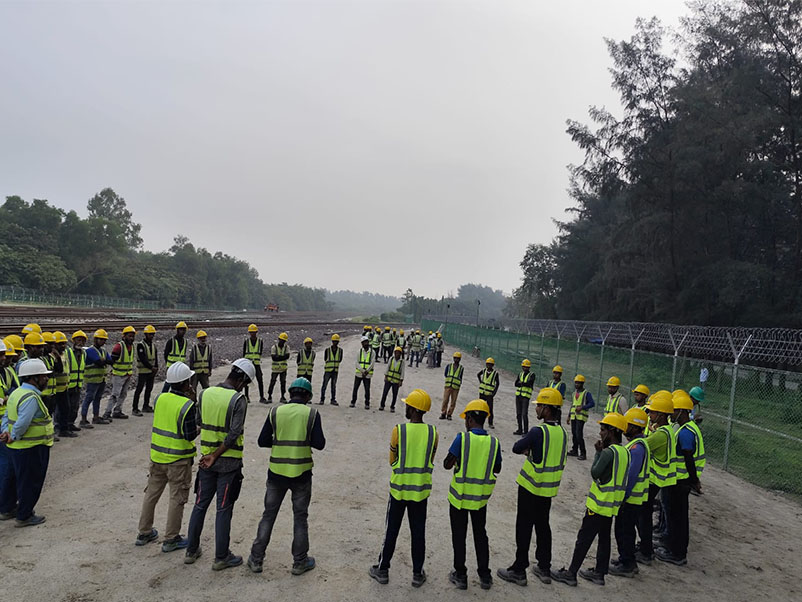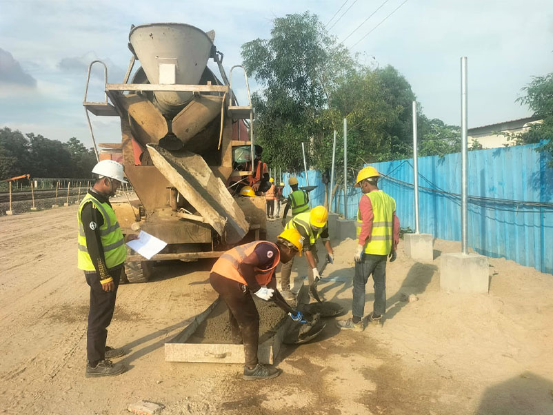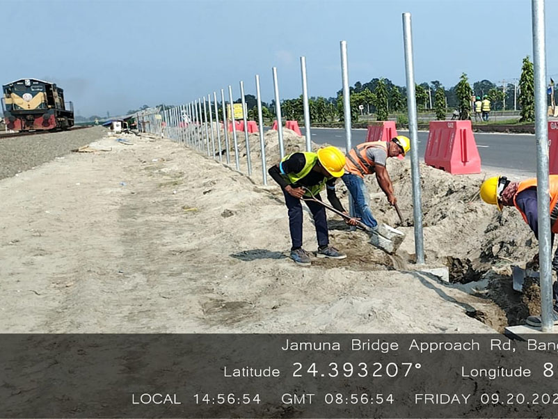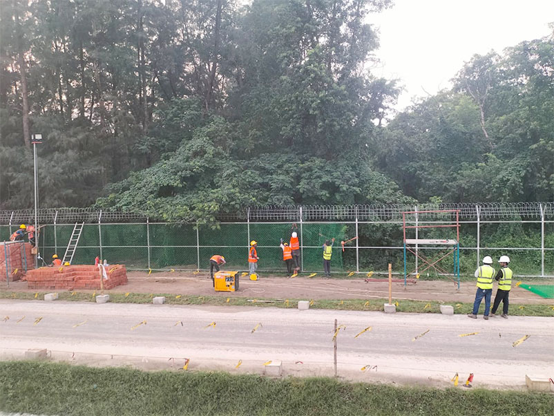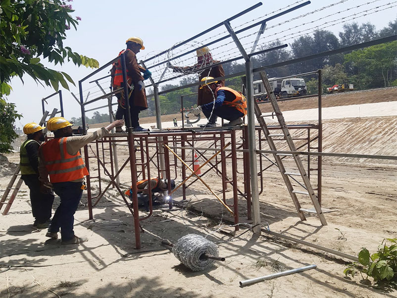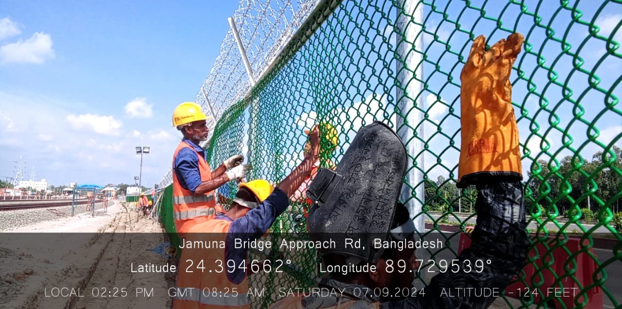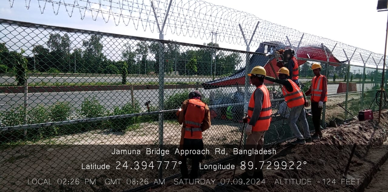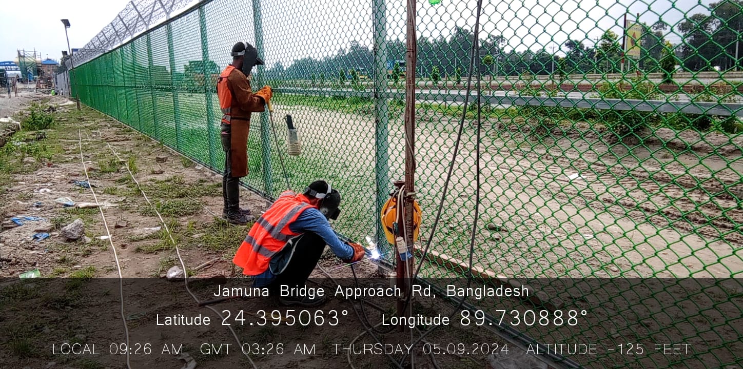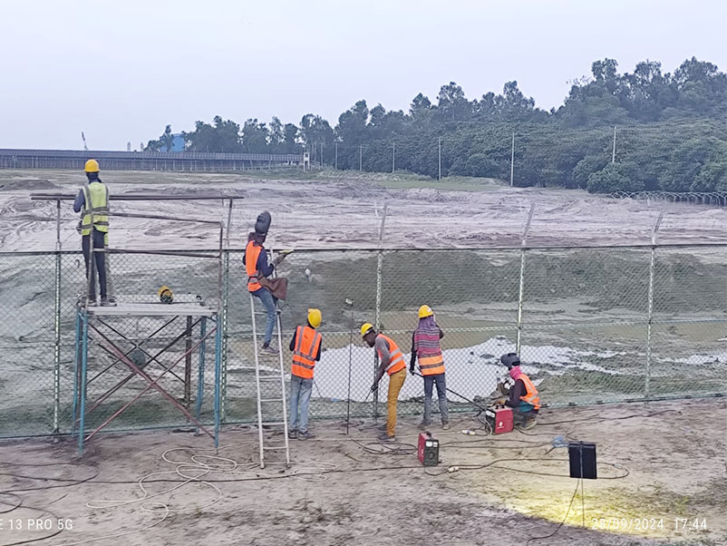 Chain Link Fence Procurement and Construction, Civil work (including earth work, CC work, rod binding, shuttering, pole fixing, RCC casting and back filling all complete). Electromechanical works (I/C angle/flat bar welding with pipe, net setting with horizontal and vertical rod welding with angle and pipe, pipe top welding, V-angle welding then horizontal and spiral barbed wire setting and tightening with GI wire).
